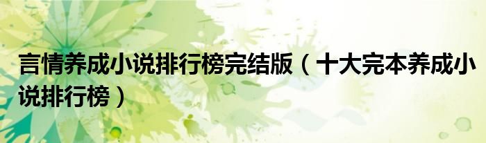 大家好,綜合小編來為大家講解下。言情養成小說排行榜完結版,十大完本養成小說排行榜很多人還不知道,現在讓我們一起來看看吧!