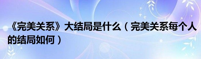 大家好,綜合小編來為大家講解下。《完美關(guān)系》大結(jié)局是什么,完美關(guān)系每個(gè)人的結(jié)局如何很多人還不知道,現(xiàn)在讓我們一起來看看吧!