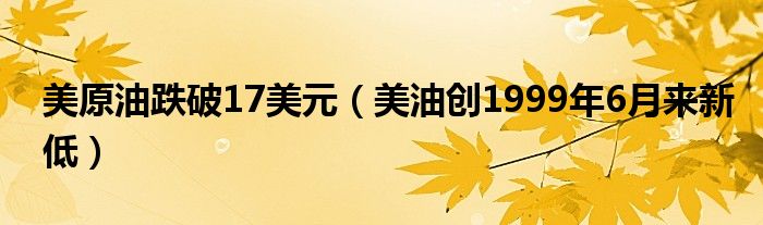 大家好,綜合小編來為大家講解下。美原油跌破17美元,美油創1999年6月來新低很多人還不知道,現在讓我們一起來看看吧!