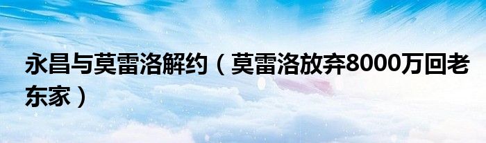 大家好,綜合小編來為大家講解下。永昌與莫雷洛解約,莫雷洛放棄8000萬回老東家很多人還不知道,現在讓我們一起來看看吧!