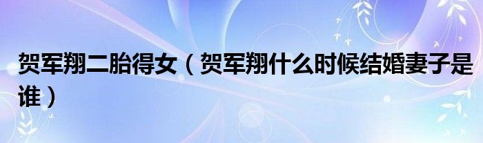 大家好,綜合小編來為大家講解下。賀軍翔二胎得女,賀軍翔什么時候結婚妻子是誰很多人還不知道,現在讓我們一起來看看吧!