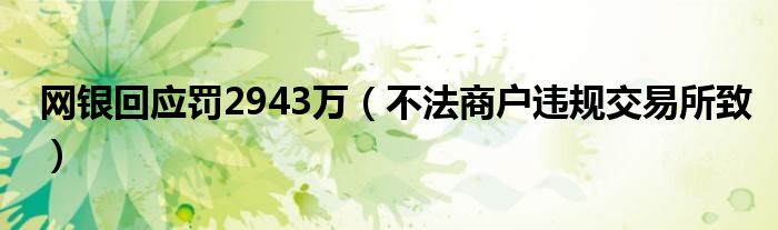大家好,綜合小編來為大家講解下。網銀回應罰2943萬,不法商戶違規交易所致很多人還不知道,現在讓我們一起來看看吧!
