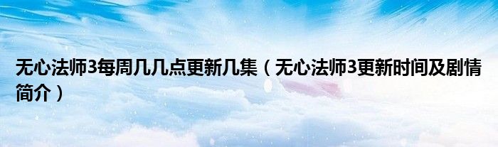 大家好,綜合小編來為大家講解下。無心法師3每周幾幾點更新幾集,無心法師3更新時間及劇情簡介很多人還不知道,現(xiàn)在讓我們一起來看看吧!