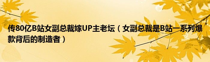 大家好,綜合小編來為大家講解下。傳80億B站女副總裁嫁UP主老壇,女副總裁是B站一系列爆款背后的制造者很多人還不知道,現在讓我們一起來看看吧!