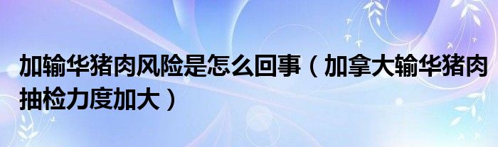 大家好,綜合小編來為大家講解下。加輸華豬肉風險是怎么回事,加拿大輸華豬肉抽檢力度加大很多人還不知道,現在讓我們一起來看看吧!