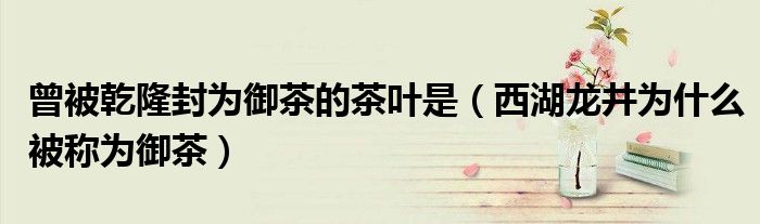 大家好,綜合小編來為大家講解下。曾被乾隆封為御茶的茶葉是,西湖龍井為什么被稱為御茶很多人還不知道,現在讓我們一起來看看吧!