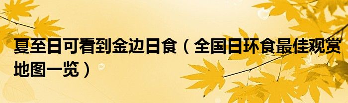 大家好,綜合小編來為大家講解下。夏至日可看到金邊日食,全國日環食最佳觀賞地圖一覽很多人還不知道,現在讓我們一起來看看吧!