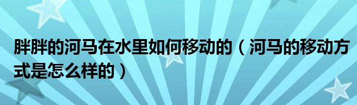 大家好,綜合小編來為大家講解下。胖胖的河馬在水里如何移動的,河馬的移動方式是怎么樣的很多人還不知道,現在讓我們一起來看看吧!