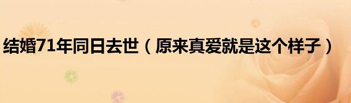 大家好,綜合小編來為大家講解下。結婚71年同日去世,原來真愛就是這個樣子很多人還不知道,現在讓我們一起來看看吧!