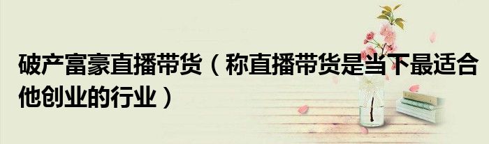 大家好,綜合小編來為大家講解下。破產富豪直播帶貨,稱直播帶貨是當下最適合他創業的行業很多人還不知道,現在讓我們一起來看看吧!