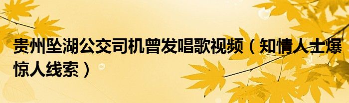 大家好,綜合小編來為大家講解下。貴州墜湖公交司機曾發唱歌視頻,知情人士爆驚人線索很多人還不知道,現在讓我們一起來看看吧!