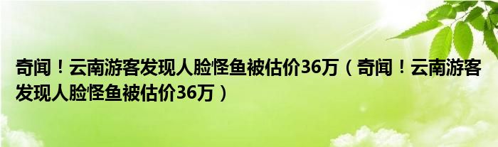 大家好,綜合小編來為大家講解下。奇聞!云南游客發現人臉怪魚被估價36萬,奇聞!云南游客發現人臉怪魚被估價36萬很多人還不知道,現在讓我們一起來看看吧!