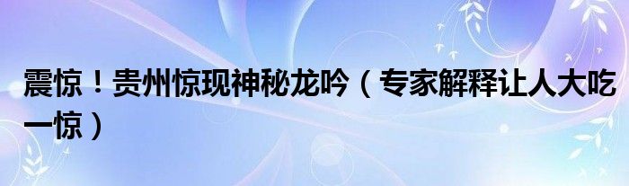 大家好,綜合小編來為大家講解下。震驚!貴州驚現神秘龍吟,專家解釋讓人大吃一驚很多人還不知道,現在讓我們一起來看看吧!