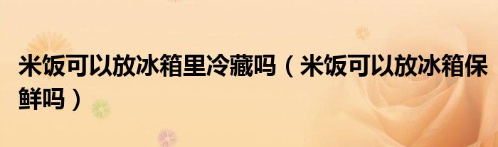 大家好,綜合小編來為大家講解下。米飯可以放冰箱里冷藏嗎,米飯可以放冰箱保鮮嗎很多人還不知道,現在讓我們一起來看看吧!