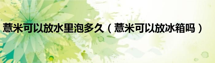 大家好,綜合小編來為大家講解下。薏米可以放水里泡多久,薏米可以放冰箱嗎很多人還不知道,現在讓我們一起來看看吧!