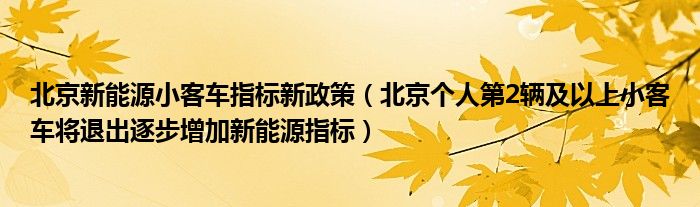【北京個人第2輛及以上小客車將退出,逐步增加新能源指標】