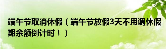 大家好,綜合小編來為大家講解下。端午節取消休假,端午節放假3天不用調休假期余額倒計時!很多人還不知道,現在讓我們一起來看看吧!