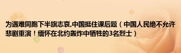 大家好,綜合小編來為大家講解下。為遇難同胞下半旗志哀,中國挺住課后題,中國人民絕不允許悲劇重演!緬懷在北約轟炸中犧牲的3名烈士很多人還不知道,現在讓我們一起來看看吧!