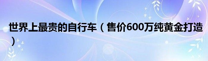 大家好,綜合小編來為大家講解下。世界上最貴的自行車,售價600萬純黃金打造很多人還不知道,現在讓我們一起來看看吧!
