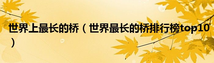 大家好,綜合小編來為大家講解下。世界上最長的橋,世界最長的橋排行榜top10很多人還不知道,現在讓我們一起來看看吧!