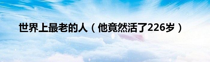 大家好,綜合小編來為大家講解下。世界上最老的人,他竟然活了226歲很多人還不知道,現(xiàn)在讓我們一起來看看吧!
