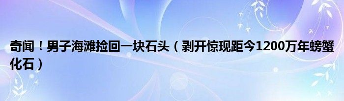 大家好,綜合小編來為大家講解下。奇聞!男子海灘撿回一塊石頭,剝開驚現距今1200萬年螃蟹化石很多人還不知道,現在讓我們一起來看看吧!