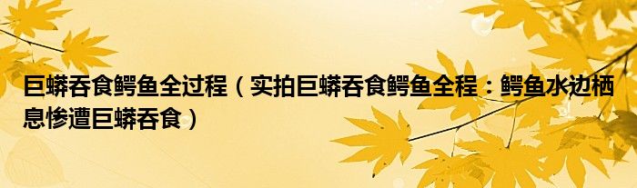 大家好,綜合小編來為大家講解下。巨蟒吞食鱷魚全過程,實拍巨蟒吞食鱷魚全程:鱷魚水邊棲息慘遭巨蟒吞食很多人還不知道,現在讓我們一起來看看吧!