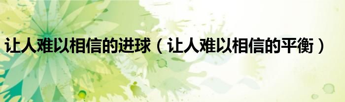 大家好,綜合小編來為大家講解下。讓人難以相信的進球,讓人難以相信的平衡很多人還不知道,現在讓我們一起來看看吧!