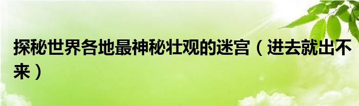 大家好,綜合小編來為大家講解下。探秘世界各地最神秘壯觀的迷宮,進去就出不來很多人還不知道,現在讓我們一起來看看吧!