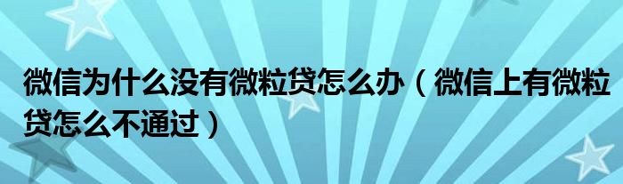 大家好,綜合小編來為大家講解下。微信為什么沒有微粒貸怎么辦,微信上有微粒貸怎么不通過很多人還不知道,現在讓我們一起來看看吧!