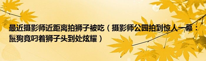 大家好,綜合小編來為大家講解下。最近攝影師近距離拍獅子被吃,攝影師公園拍到驚人一幕:鬣狗竟叼著獅子頭到處炫耀很多人還不知道,現在讓我們一起來看看吧!