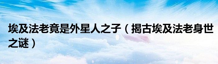 大家好,綜合小編來為大家講解下。埃及法老竟是外星人之子,揭古埃及法老身世之謎很多人還不知道,現在讓我們一起來看看吧!