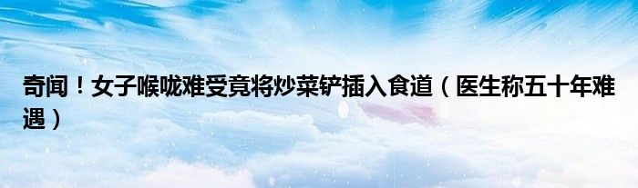 大家好,綜合小編來為大家講解下。奇聞!女子喉嚨難受竟將炒菜鏟插入食道,醫(yī)生稱五十年難遇很多人還不知道,現(xiàn)在讓我們一起來看看吧!