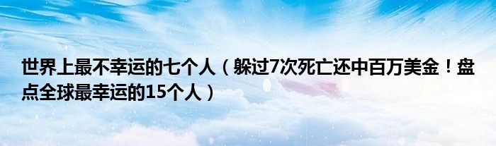 大家好,綜合小編來為大家講解下。世界上最不幸運(yùn)的七個(gè)人,躲過7次死亡還中百萬美金!盤點(diǎn)全球最幸運(yùn)的15個(gè)人很多人還不知道,現(xiàn)在讓我們一起來看看吧!