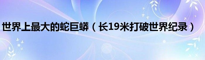 大家好,綜合小編來為大家講解下。世界上最大的蛇巨蟒,長19米打破世界紀(jì)錄很多人還不知道,現(xiàn)在讓我們一起來看看吧!