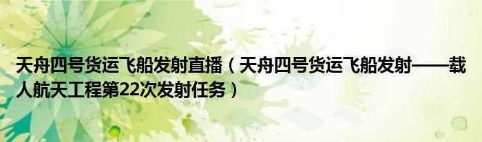 大家好,綜合小編來為大家講解下。天舟四號貨運飛船發射直播,天舟四號貨運飛船發射——載人航天工程第22次發射任務很多人還不知道,現在讓我們一起來看看吧!