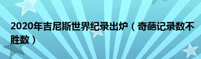 大家好,綜合小編來為大家講解下。2020年吉尼斯世界紀(jì)錄出爐,奇葩記錄數(shù)不勝數(shù)很多人還不知道,現(xiàn)在讓我們一起來看看吧!