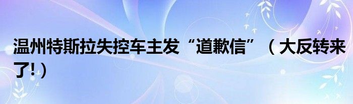 大家好,綜合小編來為大家講解下。溫州特斯拉失控車主發“道歉信”,大反轉來了!很多人還不知道,現在讓我們一起來看看吧!