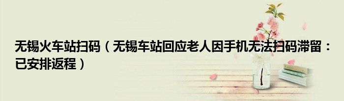 大家好,綜合小編來為大家講解下。無錫火車站掃碼,無錫車站回應老人因手機無法掃碼滯留:已安排返程很多人還不知道,現在讓我們一起來看看吧!