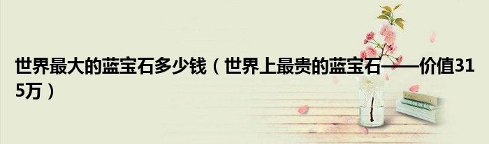大家好,綜合小編來為大家講解下。世界最大的藍(lán)寶石多少錢,世界上最貴的藍(lán)寶石——價(jià)值315萬很多人還不知道,現(xiàn)在讓我們一起來看看吧!