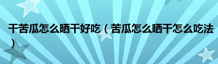 大家好,綜合小編來為大家講解下。干苦瓜怎么曬干好吃,苦瓜怎么曬干怎么吃法很多人還不知道,現在讓我們一起來看看吧!