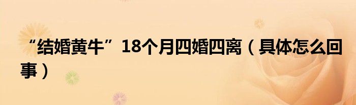 【“結婚黃牛”18個月四婚四離 具體怎么回事?】