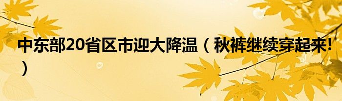 大家好,綜合小編來為大家講解下。中東部20省區市迎大降溫,秋褲繼續穿起來!很多人還不知道,現在讓我們一起來看看吧!