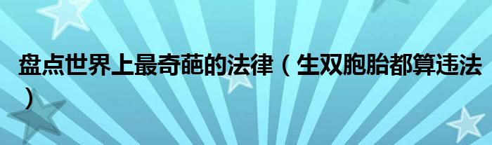 大家好,綜合小編來為大家講解下。盤點世界上最奇葩的法律,生雙胞胎都算違法很多人還不知道,現在讓我們一起來看看吧!