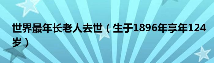 大家好,綜合小編來為大家講解下。世界最年長老人去世,生于1896年享年124歲很多人還不知道,現在讓我們一起來看看吧!