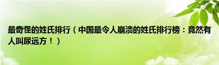 大家好,綜合小編來為大家講解下。最奇怪的姓氏排行,中國最令人崩潰的姓氏排行榜:竟然有人叫尿遠方!很多人還不知道,現在讓我們一起來看看吧!