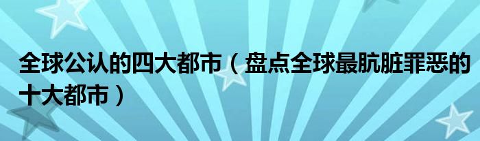 大家好,綜合小編來為大家講解下。全球公認的四大都市,盤點全球最骯臟罪惡的十大都市很多人還不知道,現在讓我們一起來看看吧!