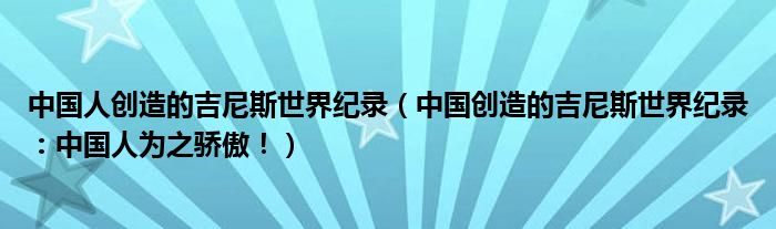 大家好,綜合小編來為大家講解下。中國人創(chuàng)造的吉尼斯世界紀(jì)錄,中國創(chuàng)造的吉尼斯世界紀(jì)錄:中國人為之驕傲!很多人還不知道,現(xiàn)在讓我們一起來看看吧!