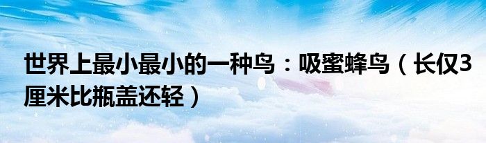 大家好,綜合小編來為大家講解下。世界上最小最小的一種鳥:吸蜜蜂鳥,長僅3厘米比瓶蓋還輕很多人還不知道,現在讓我們一起來看看吧!