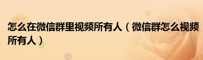 大家好,綜合小編來為大家講解下。怎么在微信群里視頻所有人,微信群怎么視頻所有人很多人還不知道,現在讓我們一起來看看吧!